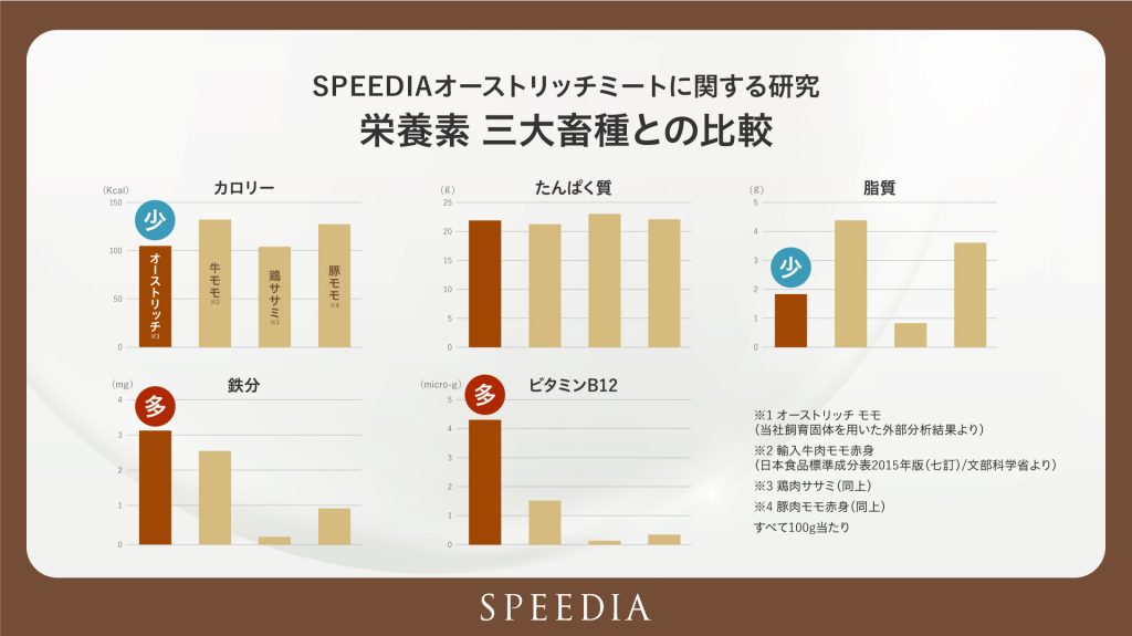 SPEEDIA(吉野家HDの100%子会社)による研究で明らかになったのは、オーストリッチミートのバランスの良さ。